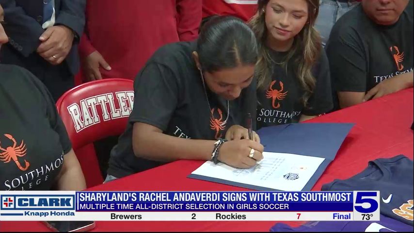 Sharyland's Rachel Andaverdi signed her letter of intent to Texas Southmost College to join the women's soccer team on Thursday afternoon.