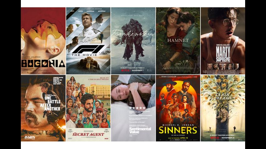The 10 films nominated for best picture are "Bugonia," "F1," "Frankenstein," "Hamnet," "Marty Supreme," "One Battle After Another," "The Secret Agent," "Sentimental Value," "Sinners" and "Train Dreams."