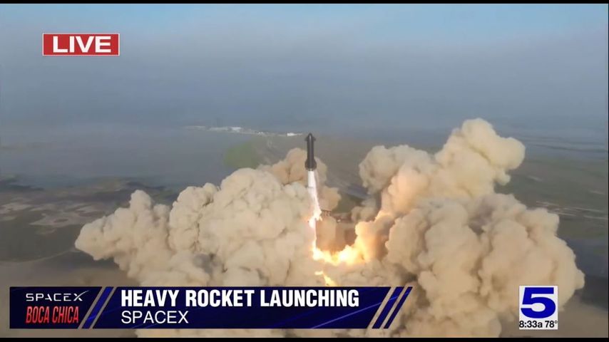 SOUTH PADRE ISLAND, Texas (AP) — SpaceX's giant new rocket blasted off on its first test flight Thursday but exploded minutes after rising from the launch pad and crashed into the Gulf of Mexico.