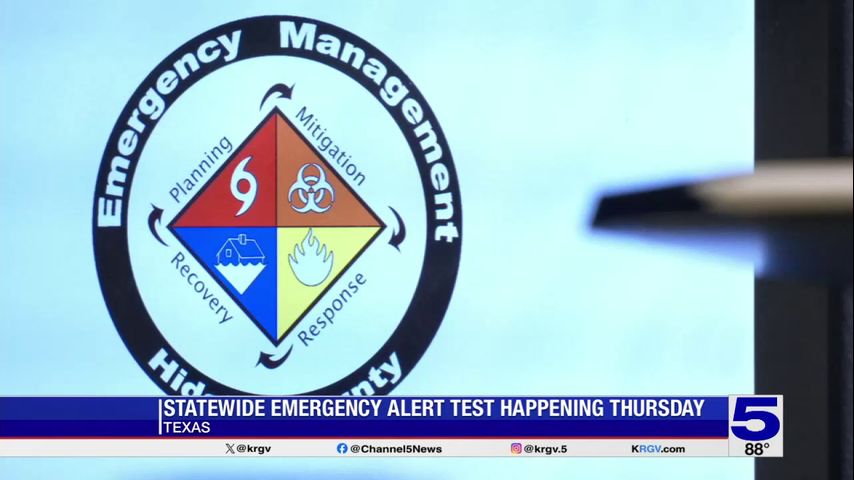 A primary alert will be issued through IPAWS. Hidalgo County residents who signed up for the E-Dalgo system will also receive a county-issued test notification.