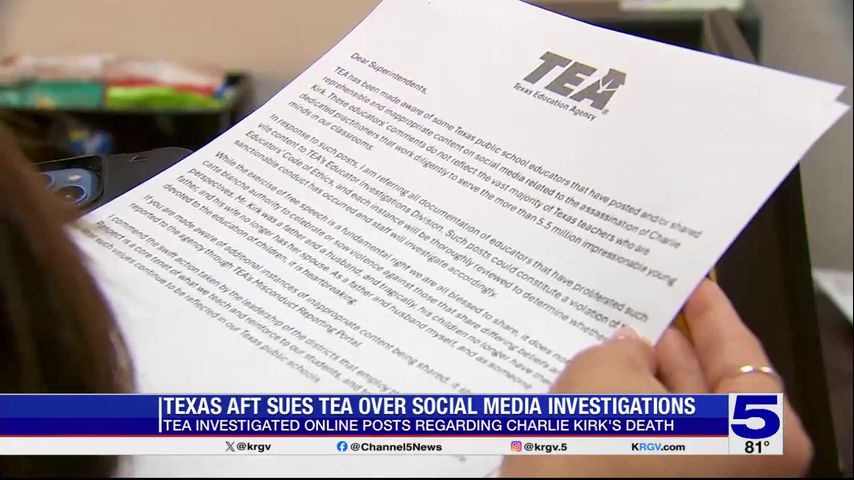 A teachers union is suing the Texas Education Agency following an investigation into social media posts made by teachers after the death of political activist Charlie Kirk.