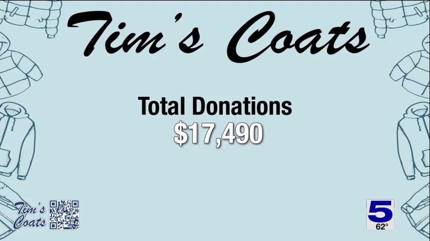As of Saturday morning, Tim's Coats has received $17,490. Funds from Tim's Coats will go toward the purchase of new coats for families in need.