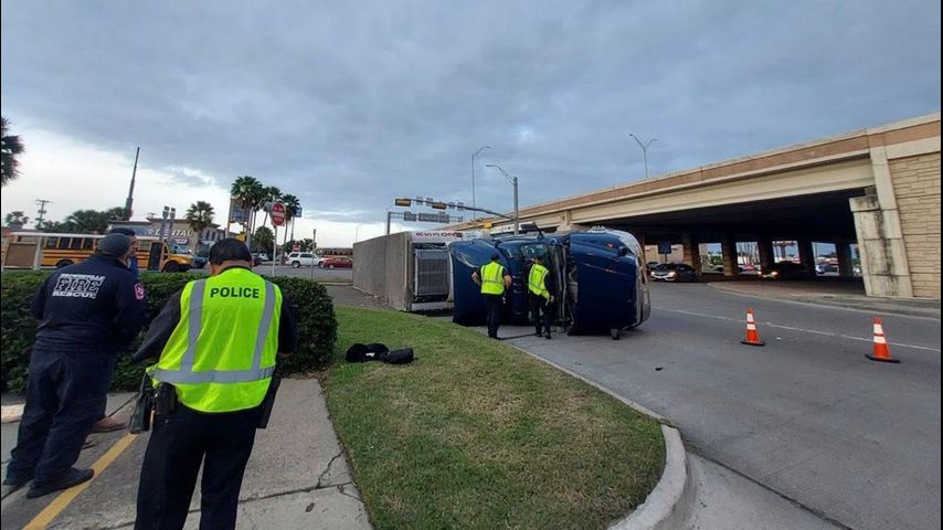 Tractor-trailer rollover crash causing traffic issues in Brownsville