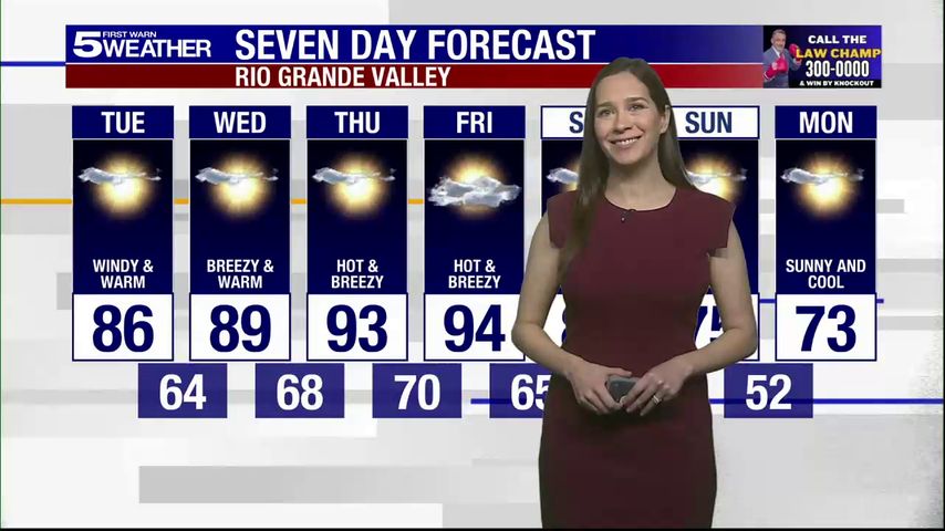 Tuesday, Feb. 17, 2026: Windy and warm, temps in the 80s
