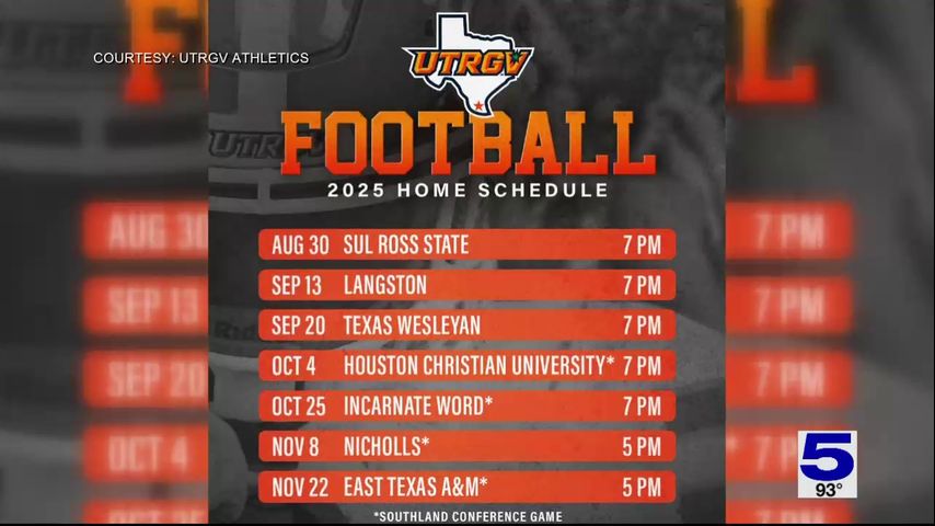 UTRGV Football announce game times for inaugural season home games. The first five home games will start at 7 p.m. The last two are set for 5 p.m.