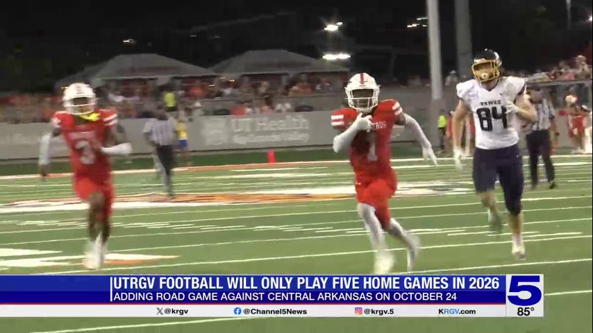 The resulting change means UTRGV will only have five home game dates this season in Edinburg: August 29 vs. UT Permian Basin, September 19 vs. McNeese, October 10 vs. Southeastern, October 31 vs. Lamar, and November 14 vs. Stephen F. Austin.