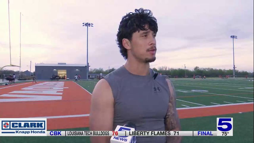 UTRGV quarterback Garret Rangel discusses first padded practice with Vaqueros