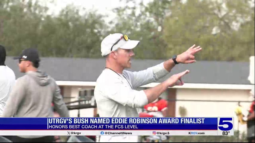 UTRGV head football coach Travis Bush is among the finalists for the Eddie Robinson Award. It honors the top coach of the year at the FCS level. Bush is among 15 finalists nationwide for the award.