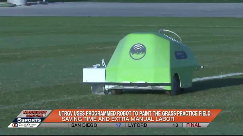 "If we do it manually, it would be two to three guys just to finish everything. I would say it would take between the whole field, the hashmarks and everything, about a whole day. With the robot, it takes us about four and a half hours, and it's done everything," UTRGV Athletics maintenance employee Rolando Reyna said.