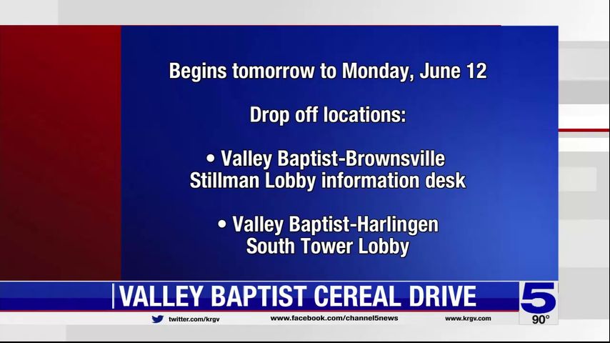 Valley Baptist Health System is collecting cereal for their Healthy Over Hungry Drive.