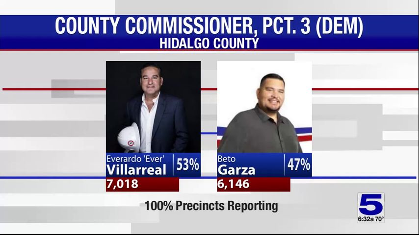 Early voting results released from the Hidalgo County Elections Department shows Villarreal received over 53% of the votes.
