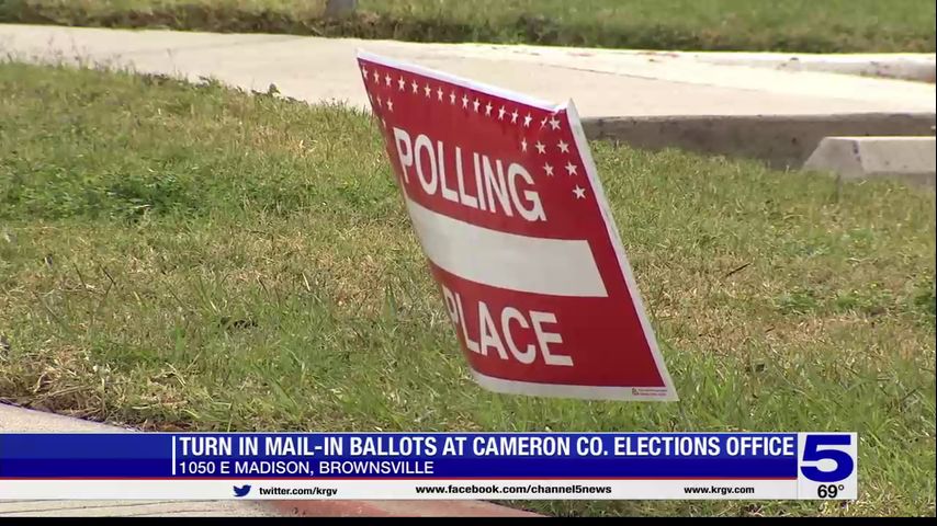 Voters can also turn in mail-in ballots at the Cameron County Elections Office located at 1050 East Madison Street in Brownsville. A valid ID is required; ballots must be submitted before 7 p.m. on Tuesday.