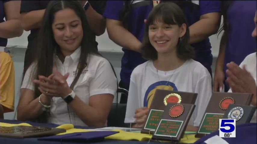 Weslaco High track star Aamarie Ebarb signed to join the track program at East Texas A&M on Wednesday.