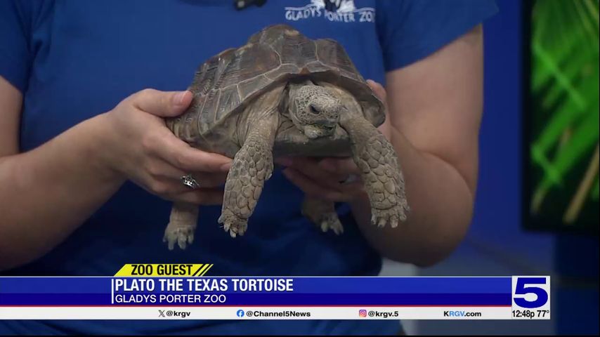 Alejandra Rodriguez from the Gladys Porter Zoo visits the Channel 5 News studio alongside Plato the Texas Tortoise.